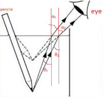 refraction of pencil in water diagram